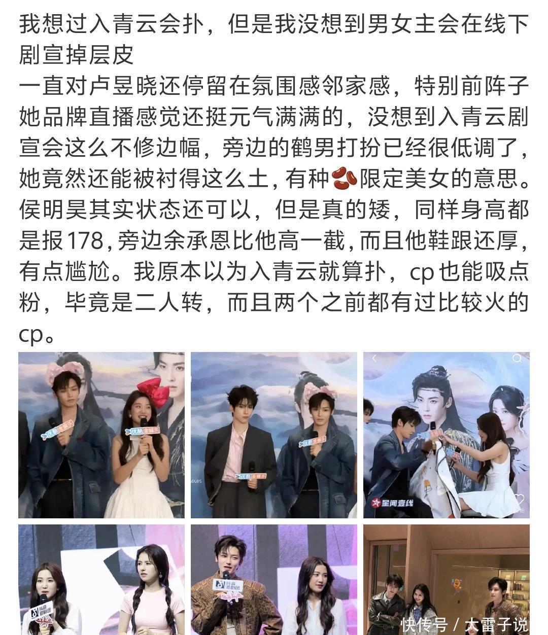 反观旁边的女二演员鹤男,也是穿的简简单单,却更出彩,腿也很直,身材也很丰满,感觉卢昱晓确实剧宣里有点普通了。