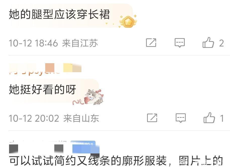 网友也都说“她长的挺好看得”,就是得在造型上花费点心思。还有另外一套,都被嘲是罗圈腿,有点像O型腿似的,确实造型上短板都遮不住。